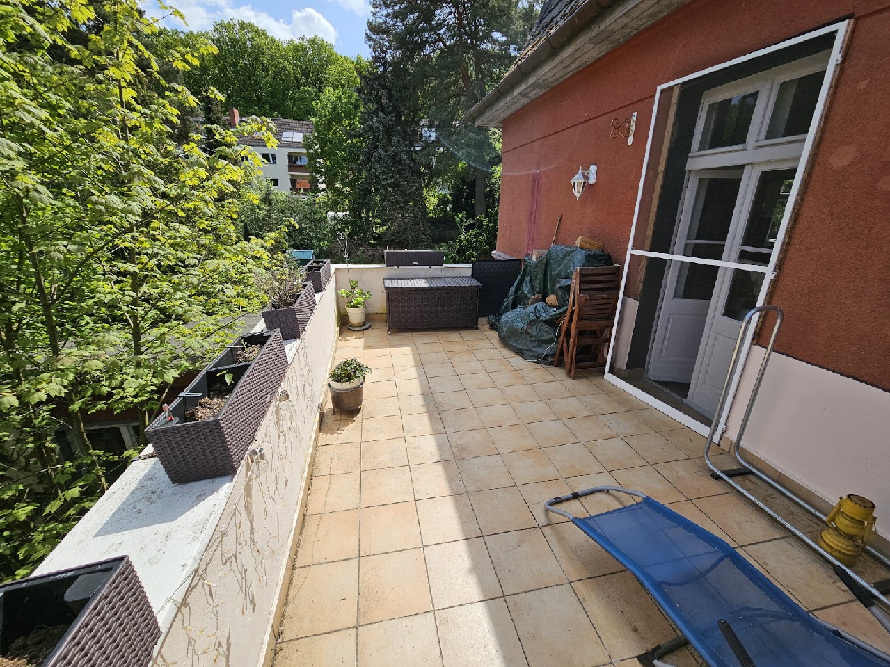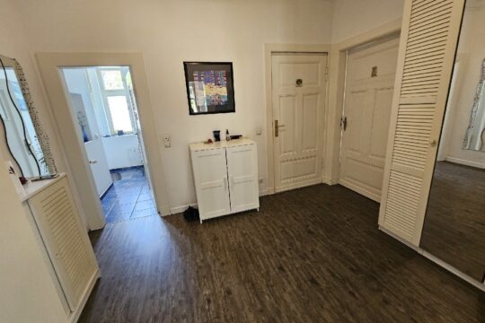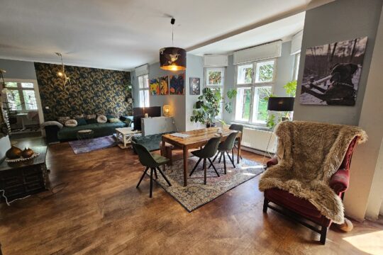 Wohneinheit Nr. 1 befindet sich im Erdgeschoss und verfügt über 4 geräumige Zimmer, eine große Küche mit diversen Einbaugeräten, sowie ein gefliestes Bad mit Eckbadewanne und einen breiten Flur – und Eingangsbereich. Des Weiteren besteht ein direkter Zugang zur Veranda, die derzeit als Hauswirtschafts – bzw. Lagerraum genutzt wird. Über das Wohnzimmer erreicht man die Terrasse und den sehr großzügigen Garten, der vielseitig nutzbar ist.